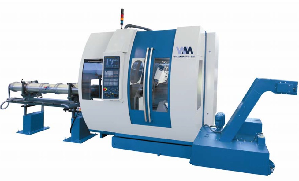 518MT加工中心可配備多種自動(dòng)系統(tǒng),自主操作性極強(qiáng),尤其適用于棒給和零件的裝卸。通過(guò)一個(gè)棒料進(jìn)給裝置或一個(gè)棒料供應(yīng)系統(tǒng),棒料可裝入A軸分度盤。 可配備各種裝置的518MT加工中心,其超強(qiáng)的靈活性可以裝載長(zhǎng)/短棒料,棒料的直徑可達(dá)65mm,各種裝卸系統(tǒng)可用于卸載成品零件。為了進(jìn)一步加強(qiáng)機(jī)床 的自動(dòng)性,威力銘-馬科黛爾公司可在機(jī)床上配備一支萬(wàn)能操作臂,用于裝載和移動(dòng)零件至/從庫(kù)區(qū),也可用于卸載棒料邊角料。威力銘-馬科黛爾公司可根據(jù)客戶 需求提供特殊的解決方案。