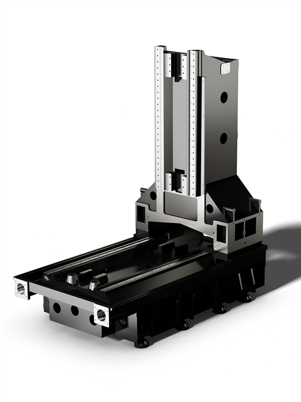 橫向滑臺(tái)及工作臺(tái)均為灰鑄鐵鑄造。橫向滑臺(tái)采用超大跨距的結(jié)構(gòu)設(shè)計(jì),有效增加機(jī)床穩(wěn)定性。